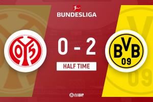 半场-多特暂2-0美因茨 阿德耶米连场破门斯文森建功布兰特两助攻