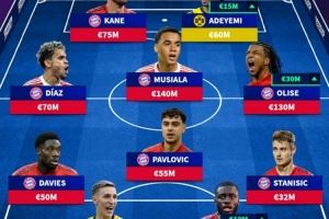 中场:路易斯-迪亚斯(拜仁慕尼黑,7000万欧元)、帕夫洛维奇(拜仁慕尼黑,5500万欧元)、穆西亚拉(拜仁慕尼黑,1.4亿欧元)、奥利塞(拜仁慕尼黑,1.3亿欧元)
