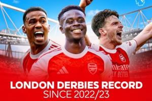 体育资讯10月24日讯 本轮英超阿森纳将在主场迎战水晶宫,今日英超官方社媒发布图片,统计英超七支伦敦球队自2022/23赛季以来伦德德比积分榜,阿森纳以87分高居榜首,切尔西第二热刺第三。
